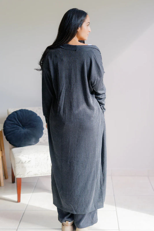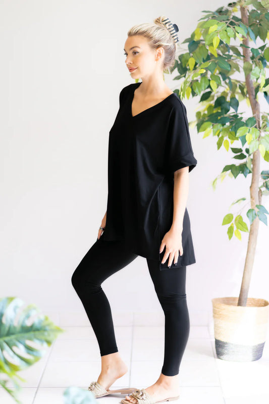 Buttery Soft V-Neck Long Sleeve Loungewear Set in Black