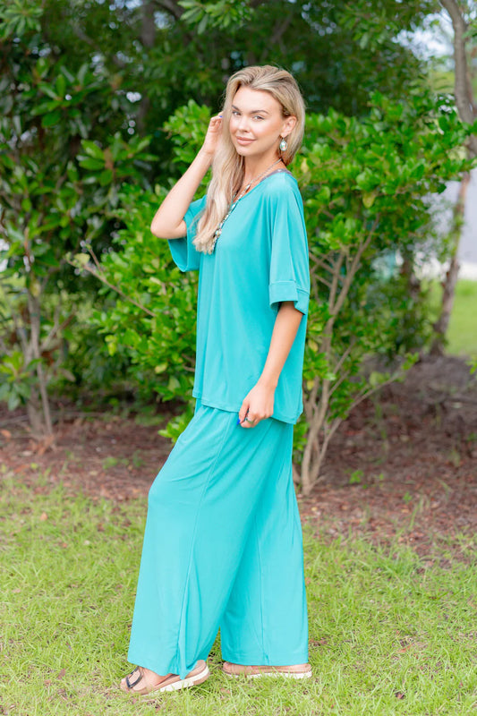 Lounge Line Wide Leg Sweats in Dusty Blue