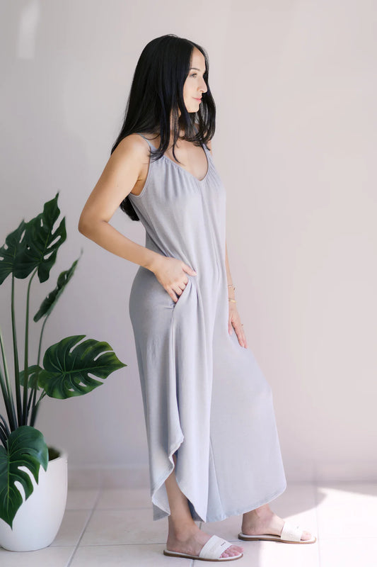 Totally Me Spaghetti Strap Jumpsuit in Ash Jade