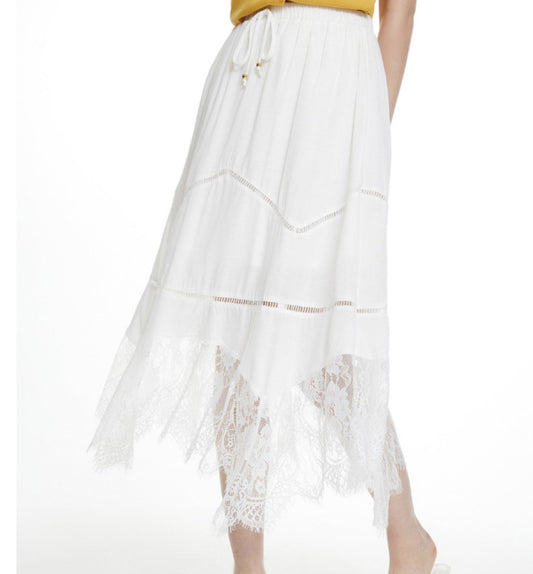 White Lace Asymmetrical Hem Maxi Skirt