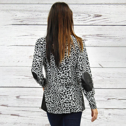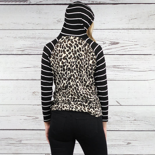 Striped Hoodie with Buffalo Plaid Print Top - Leopard