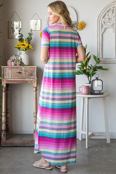 Heimish Full Size Striped Short Sleeve Maxi Tee Dress
