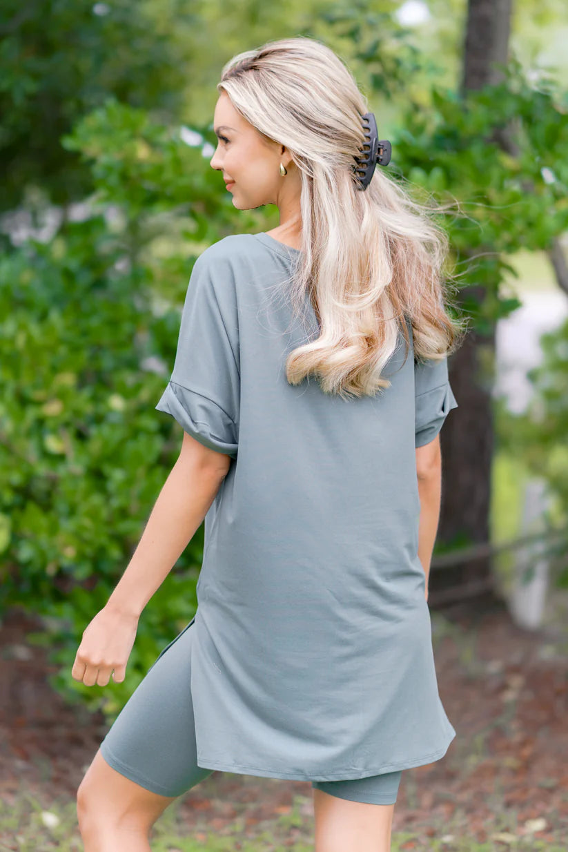 Unwind in style with the Chill Mode Set. Featuring a buttery soft brushed microfiber fabric, this set includes a v-neck hi-low hem top and biker shorts for ultimate comfort. With perfect stretch and recovery, this set is perfect for lounging or running errands. Say goodbye to boring loungewear and hello to this trendy set!