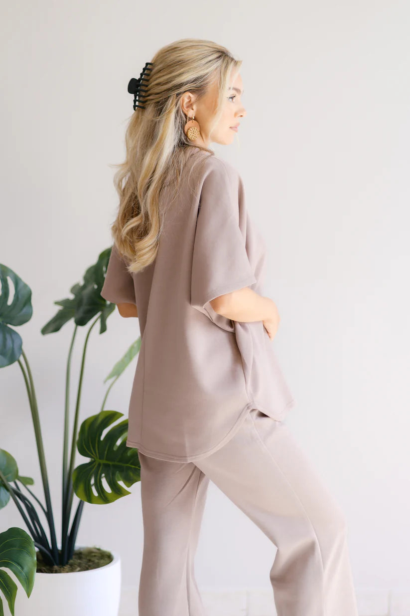 The Dune Whisper Set pairs a flowy waterfall poncho top with slight bell flare pants for a flattering, comfortable look. Made from lightweight, wrinkle-resistant fabric, it’s perfect for travel and any weather. Stay effortlessly chic and ready for adventure with this stylish, easy-to-pack set!