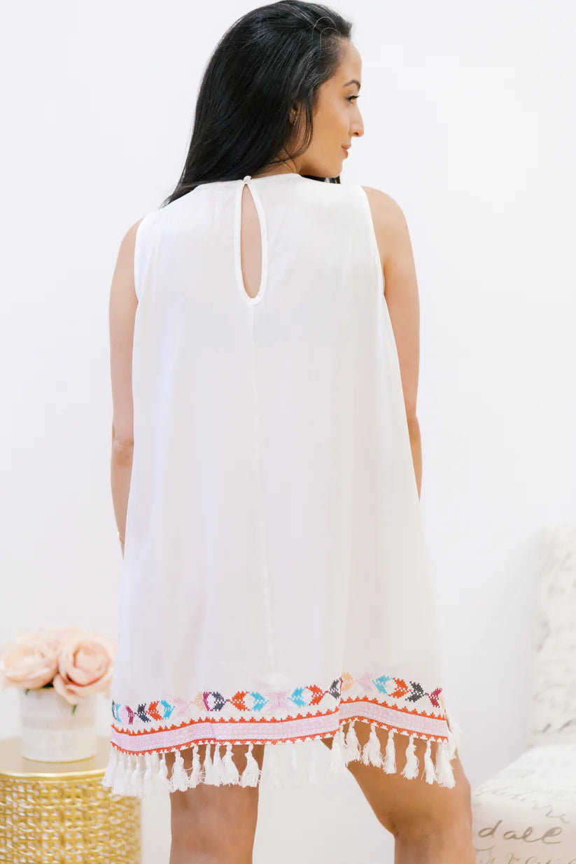 Treat your wardrobe to something special with this Embroidered Perfection Dress! With its sleeveless, v-neck cut, tassel trim, and intricate embroidery details, this dress is sure to make a statement—for all the right reasons! Show off your style and get ready to turn heads! (You won't regret it!)
