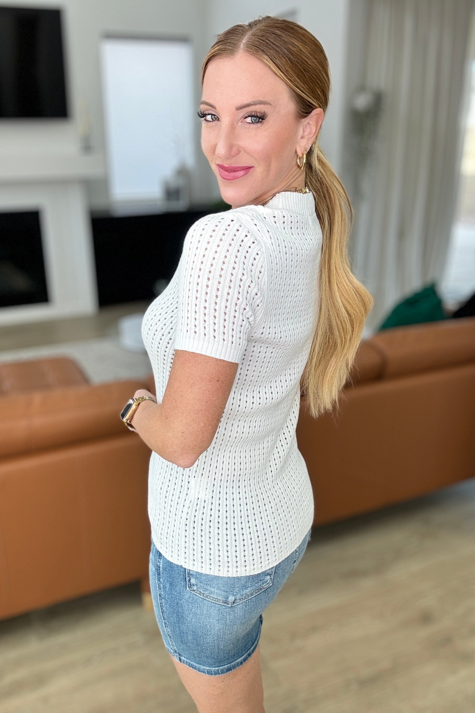 Get ready to fall in love with the Falling Slowly Loose Knit Tee! This playful and soft tee features high stretch fabric and a slim fit, perfect for any occasion. Its open weave design adds a touch of edginess to your look. Don't miss out on this must-have top!
