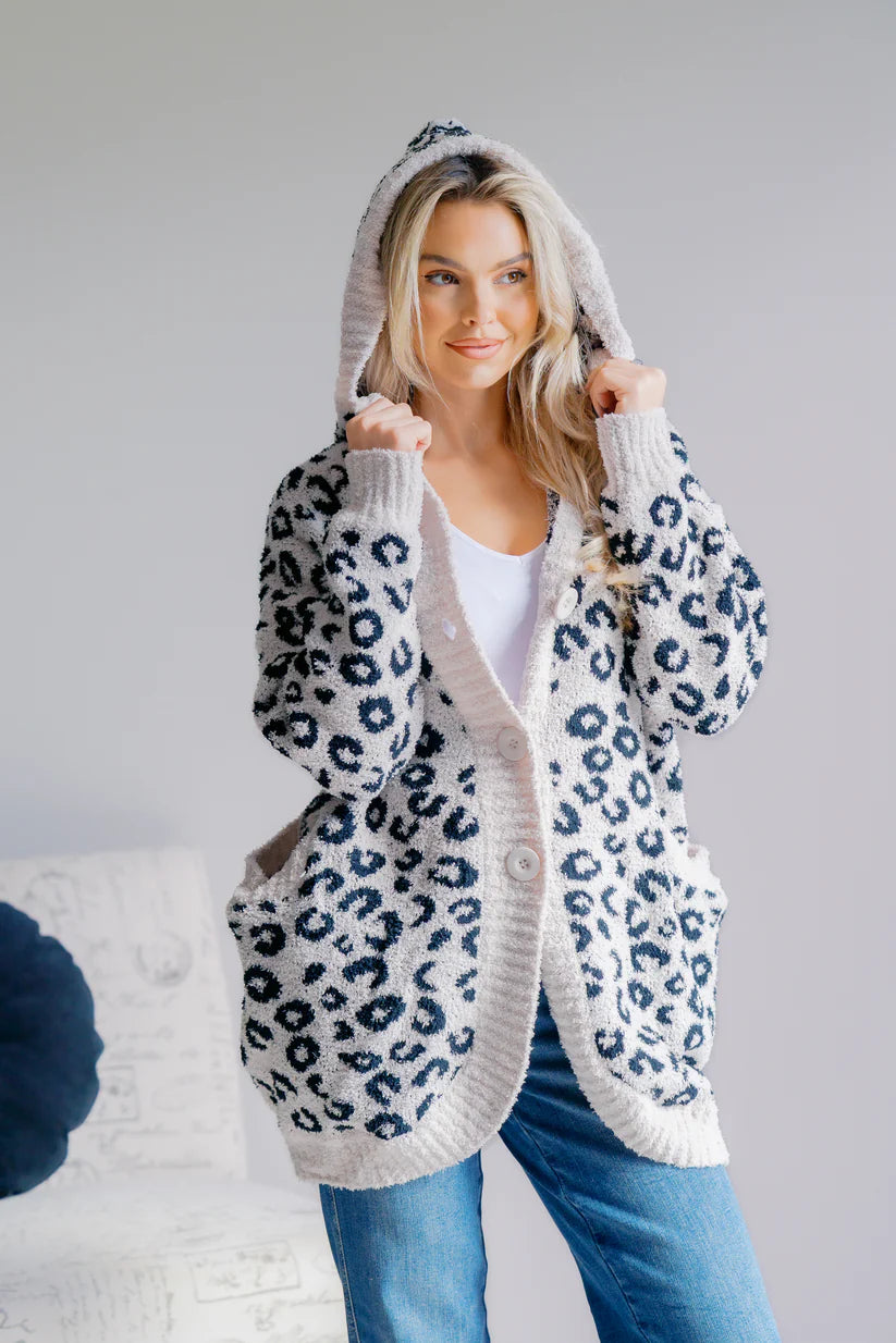 Wrap yourself in playful comfort with the Leopard Luxe Hoodie. This soft, button-up hoodie features a trendy leopard print that brings a wild twist to cozy warmth. Perfect for lounging or layering, it keeps you snug while adding fun flair to your casual look.