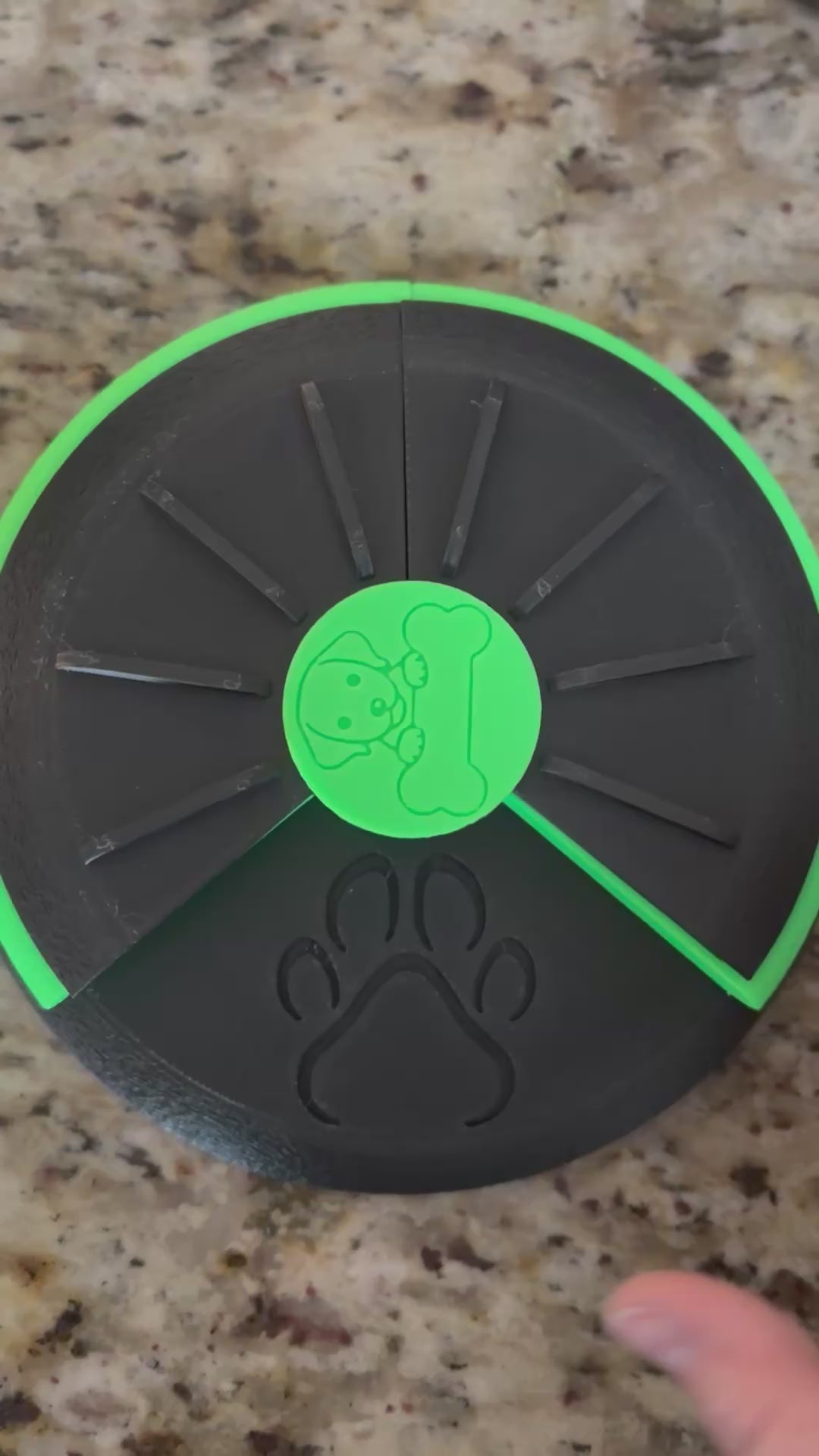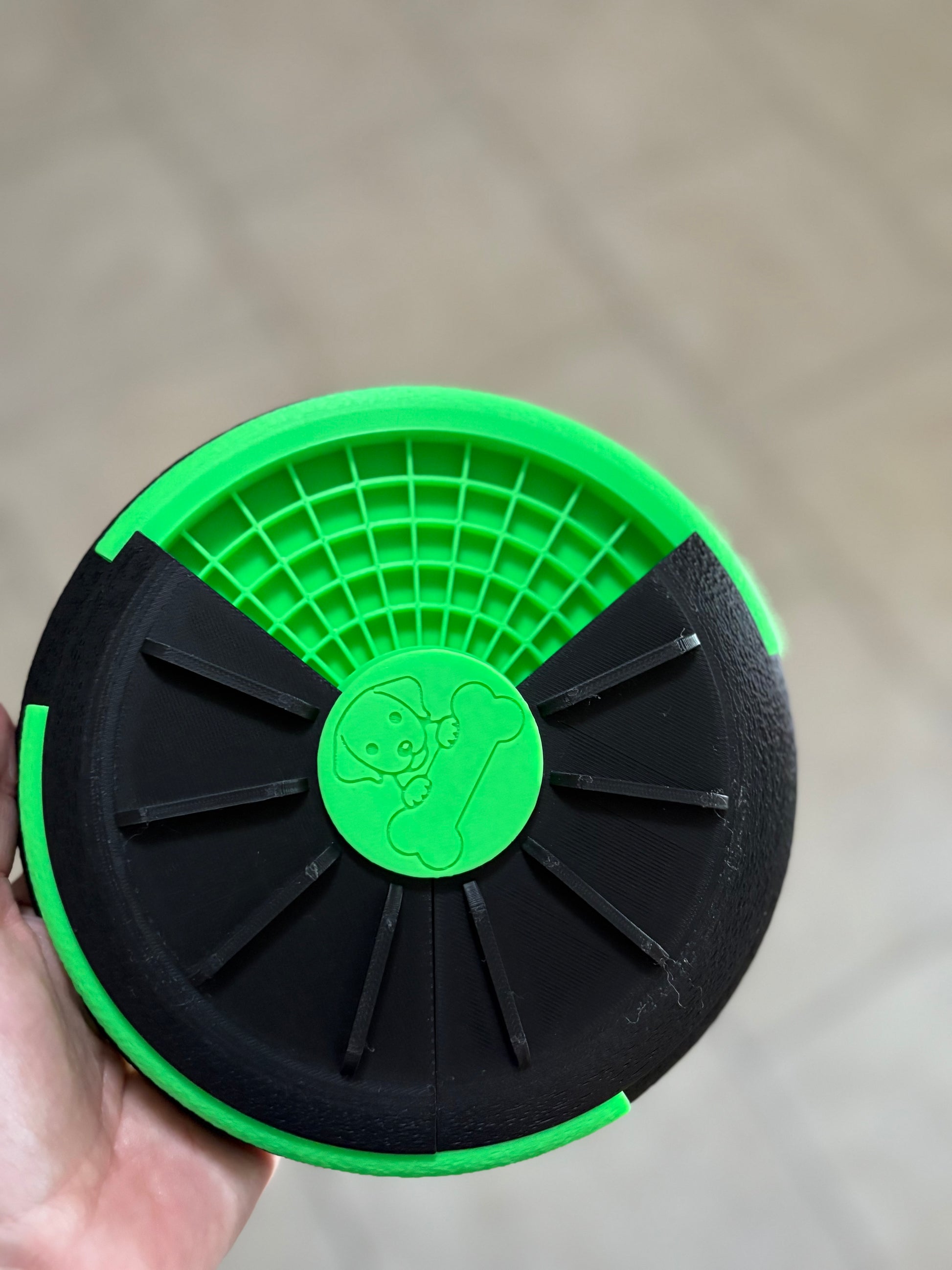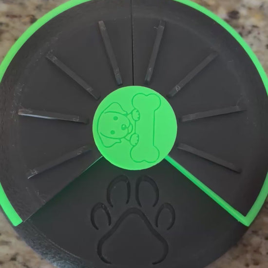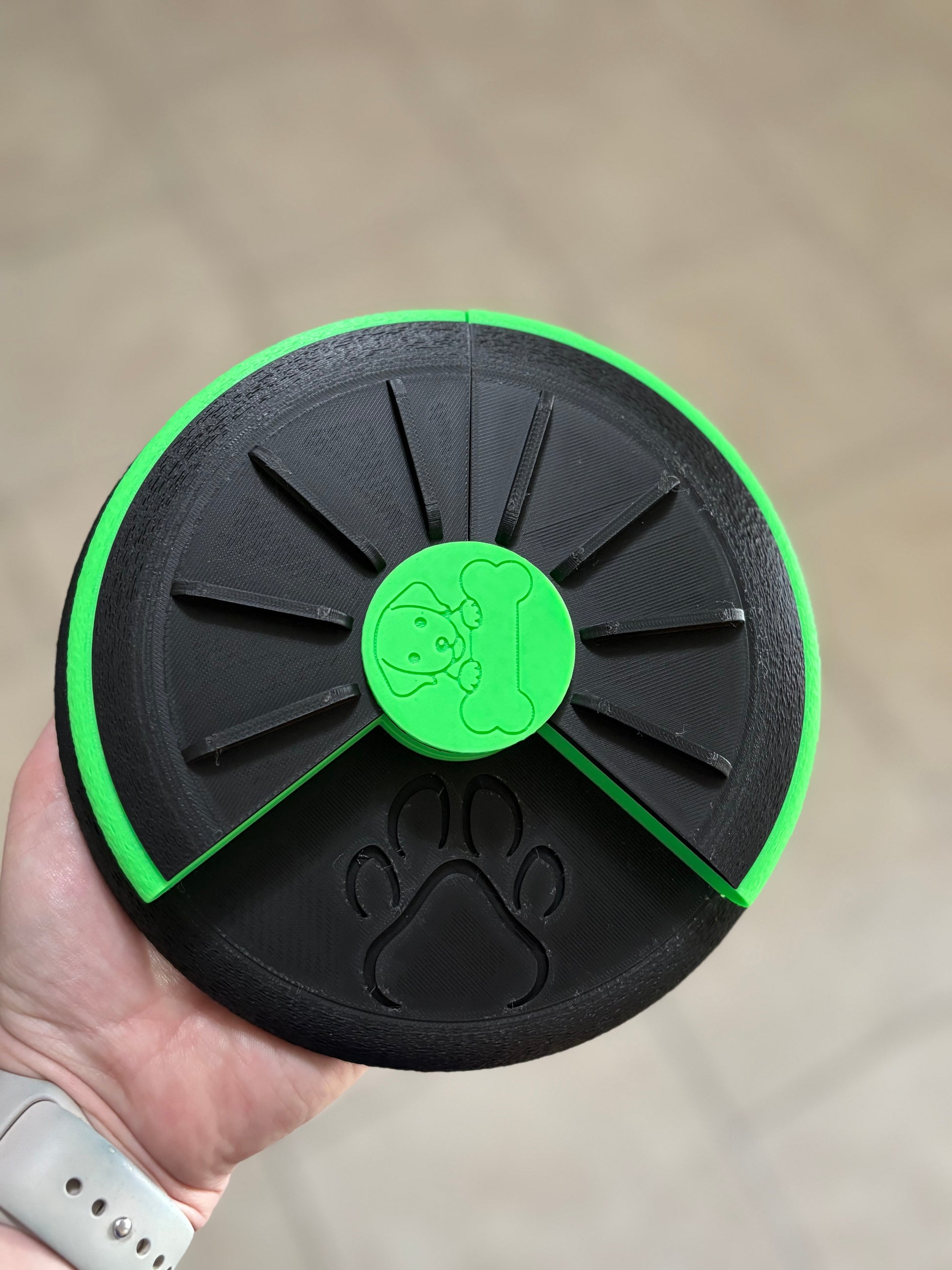Layered pet treat puzzle that spins as your pet sniffs out the treats.
