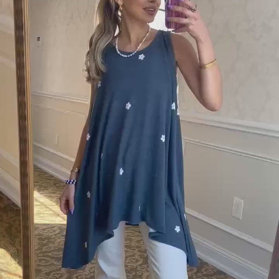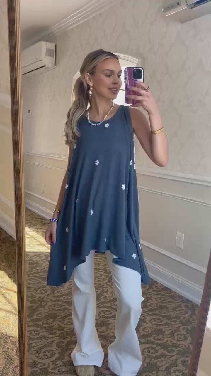 Embrace your wild side with our Wildflower Whimsy Tank! Made with a light terry fabric and reversible stitch detailing, this tank top features a white floral print that will add a playful touch to any outfit. Perfect for those who appreciate a touch of whimsy!