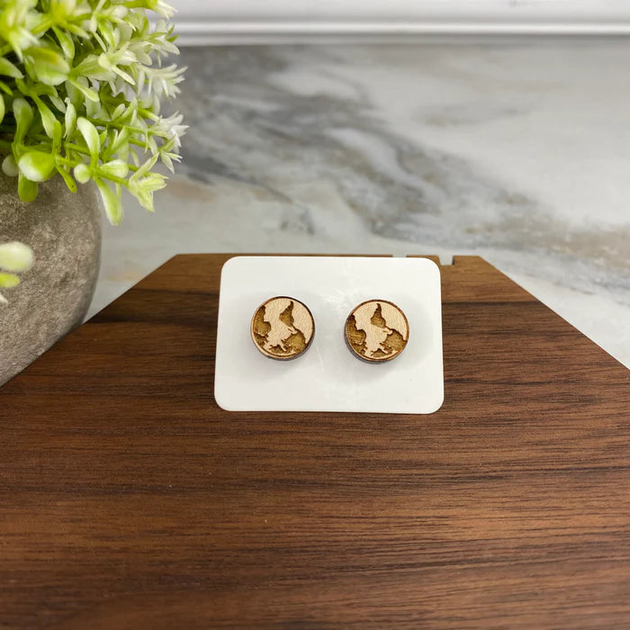 Wooden Stud Earrings - Earth